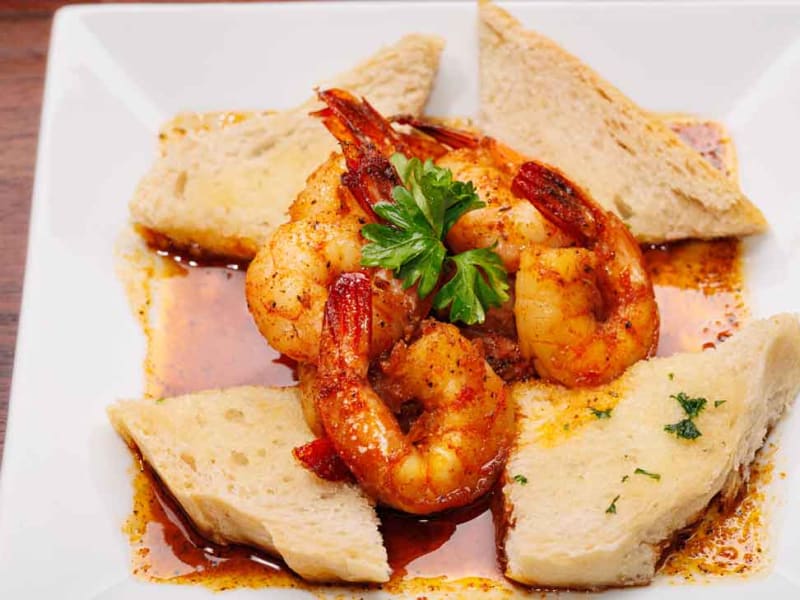 Shrimps Flambés In Sambuca & Brandi, Sprinkled With Cajun Spices Served With A Home Made Garlic Bread. (8pcs)