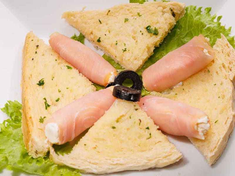 Smoked Marlin Rolls With Cream Cheese, Served With A Home Made Garlic Bread.
