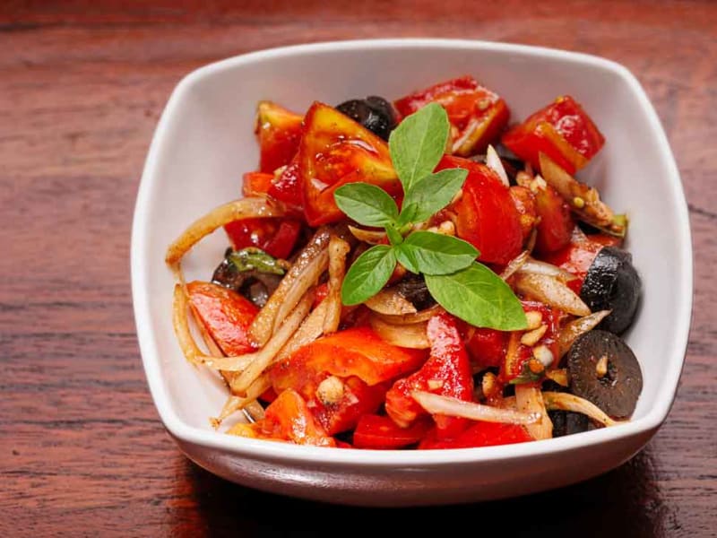 Fresh Tomato With Olives, Onion, Herbs in Special Italian Dressing